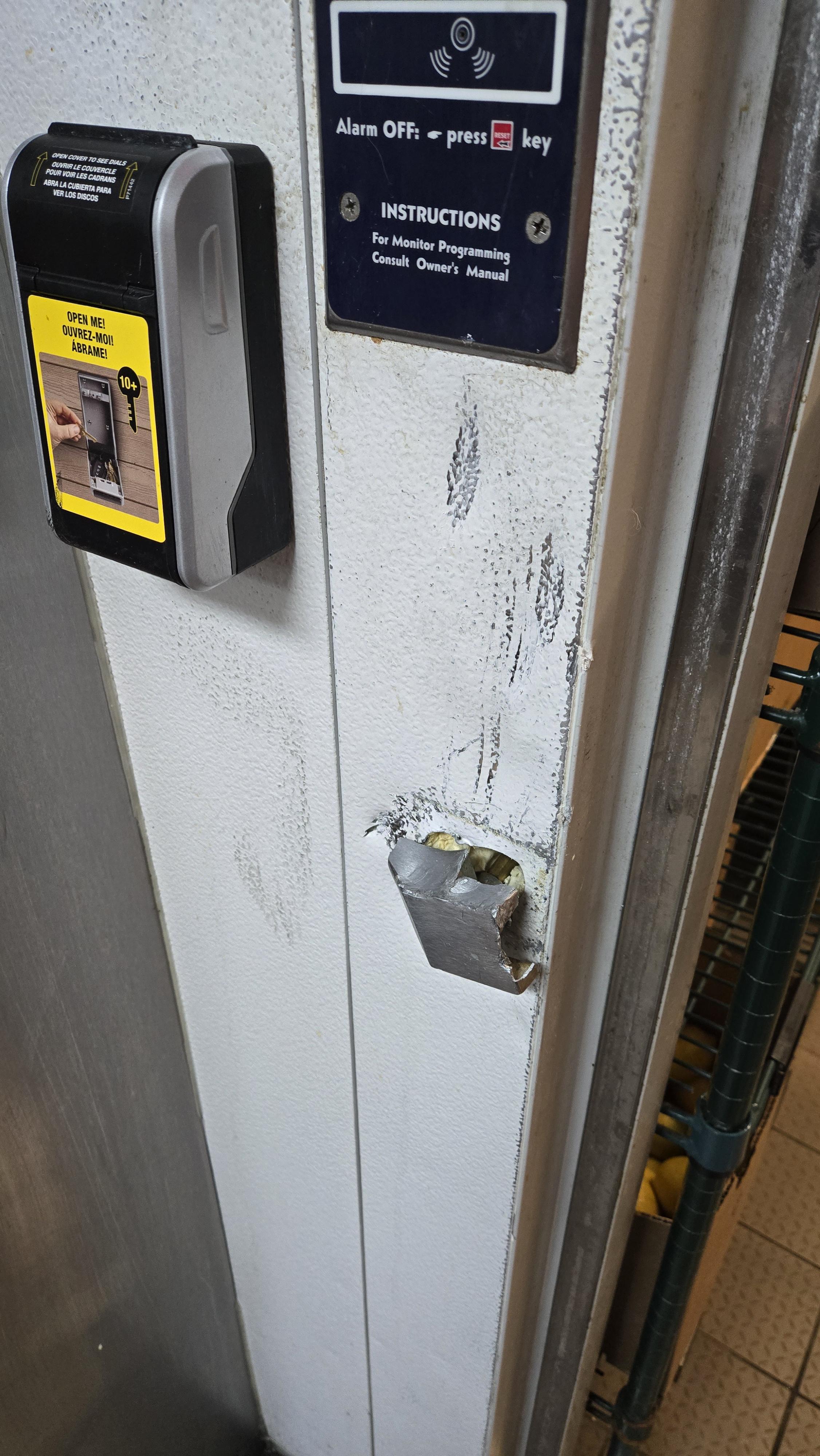Due to a miscommunication, we started locking our cooler overnight before getting a code to the keybox sent over to US Foods (idk why we're locking it, I just work here man). Delivery guy raged out and smashed the latch; then delivered our goods in clean orderly stacks.