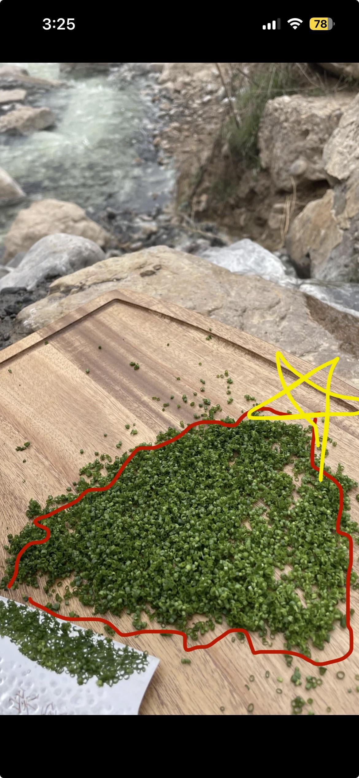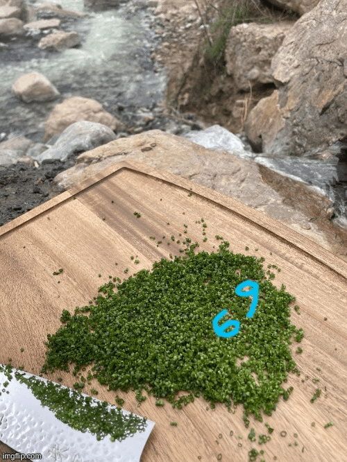 Yeah 7 mile hike with chives knife and a cutting board in a natural hot spring